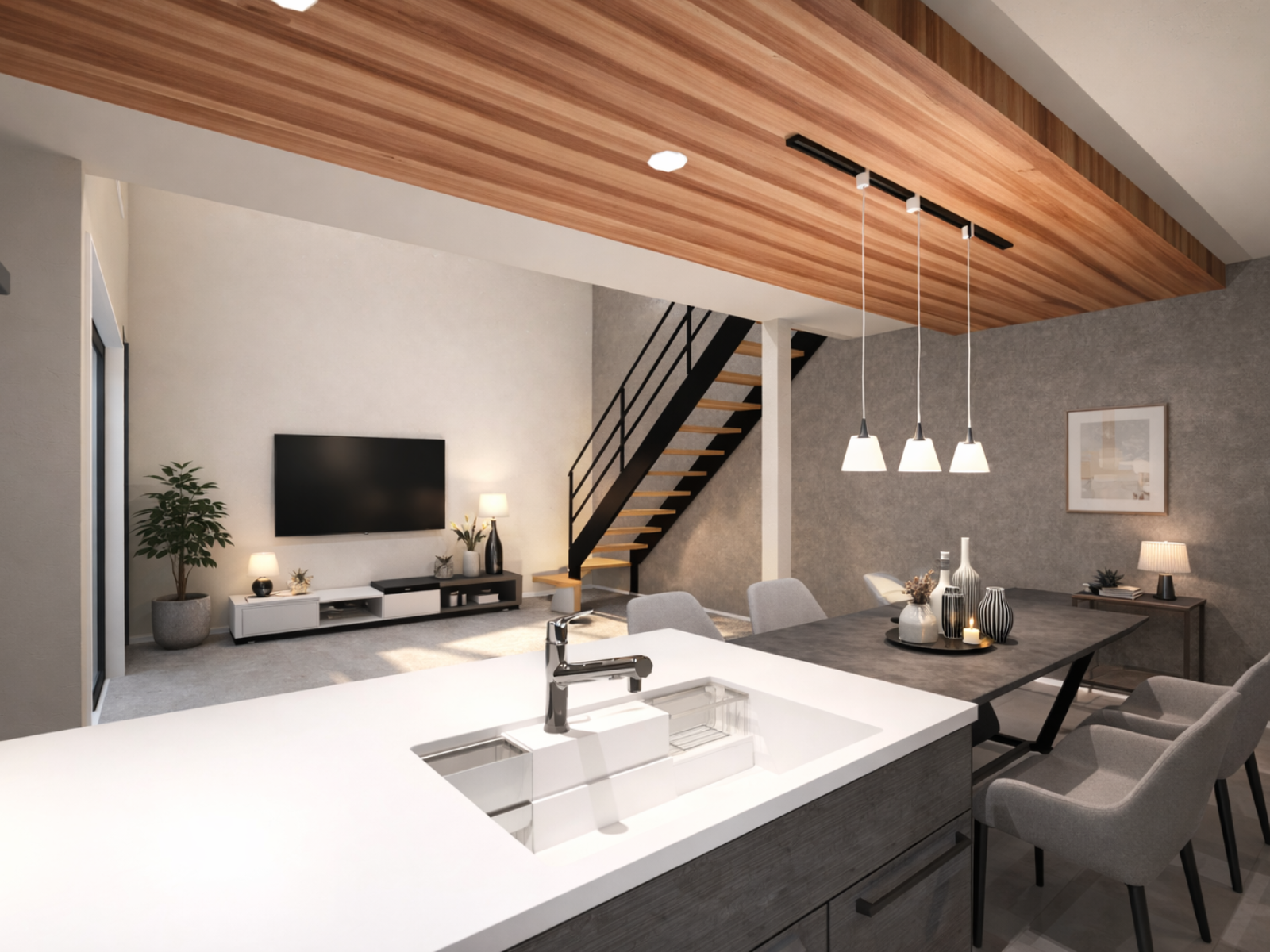 行き止まりのない間取りは、家事も移動もスムーズにし、暮らしのリズムを整えてくれます。歩くたびに中庭が目に入る設計が、家族の時間にやわらかなゆとりを生み出します。