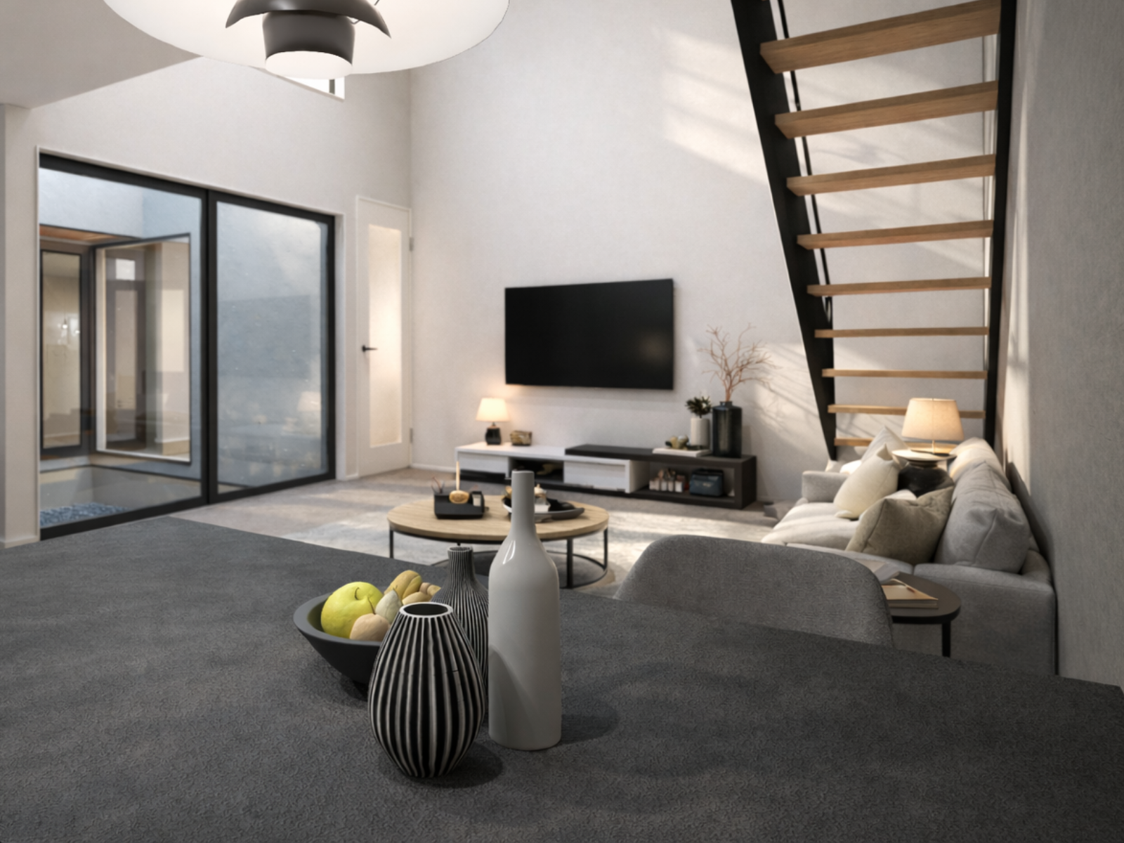 カーテンに頼らず、外を気にせず、ただ光を楽しめる贅沢があります。