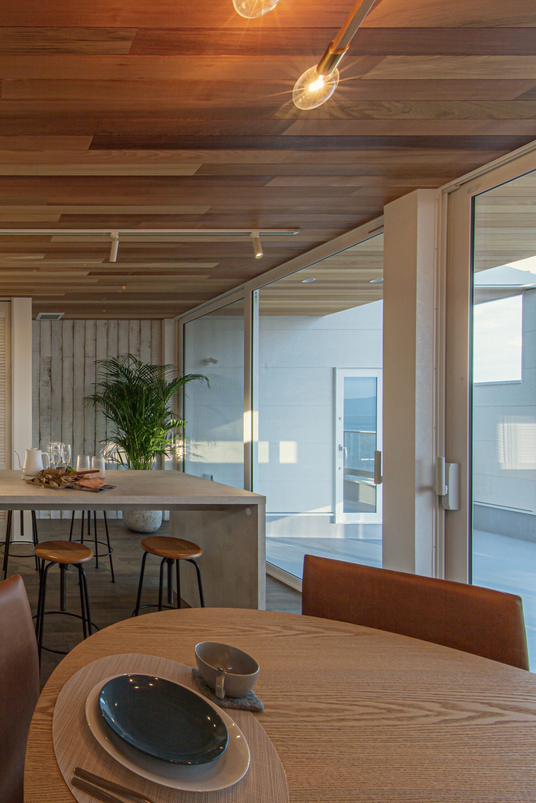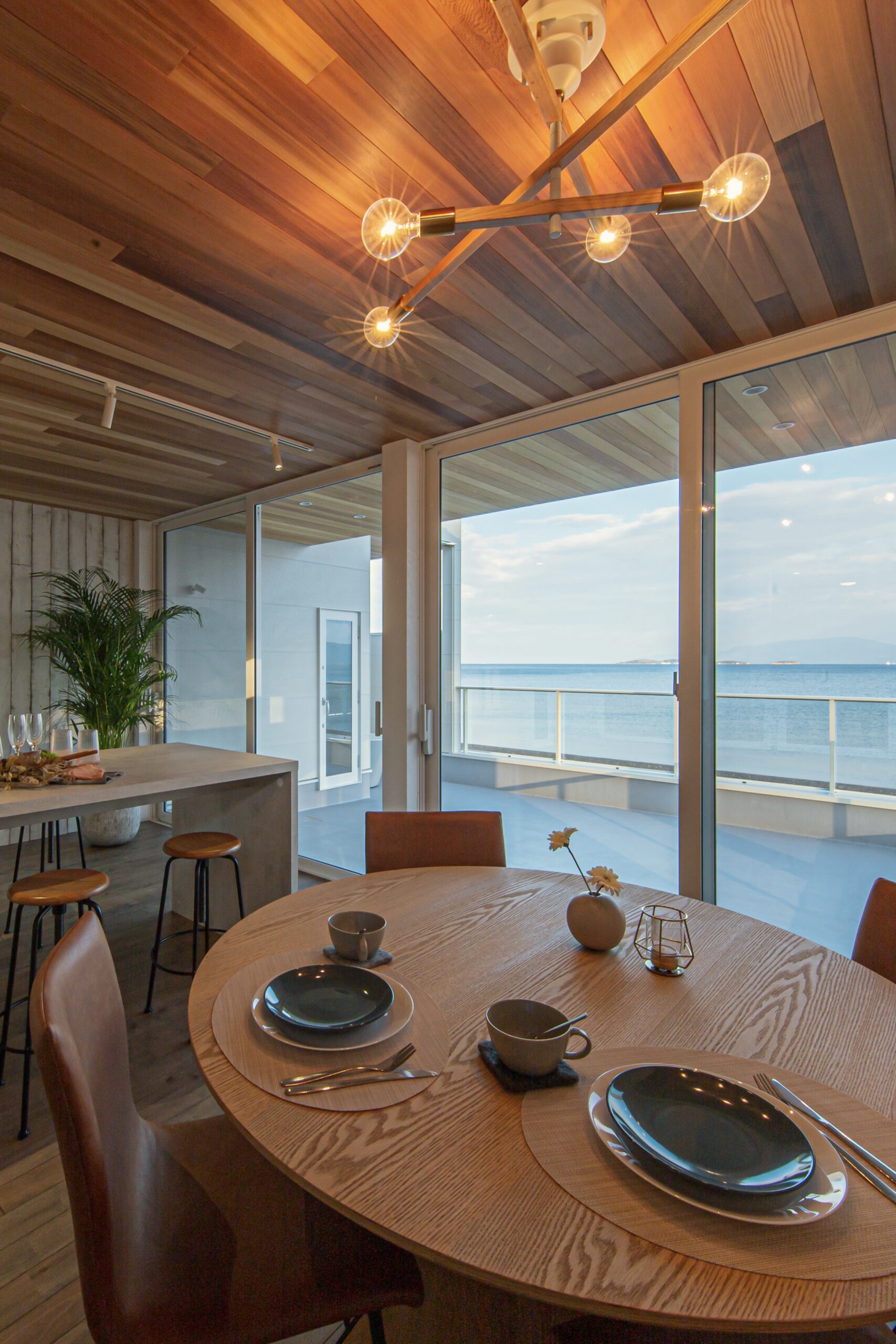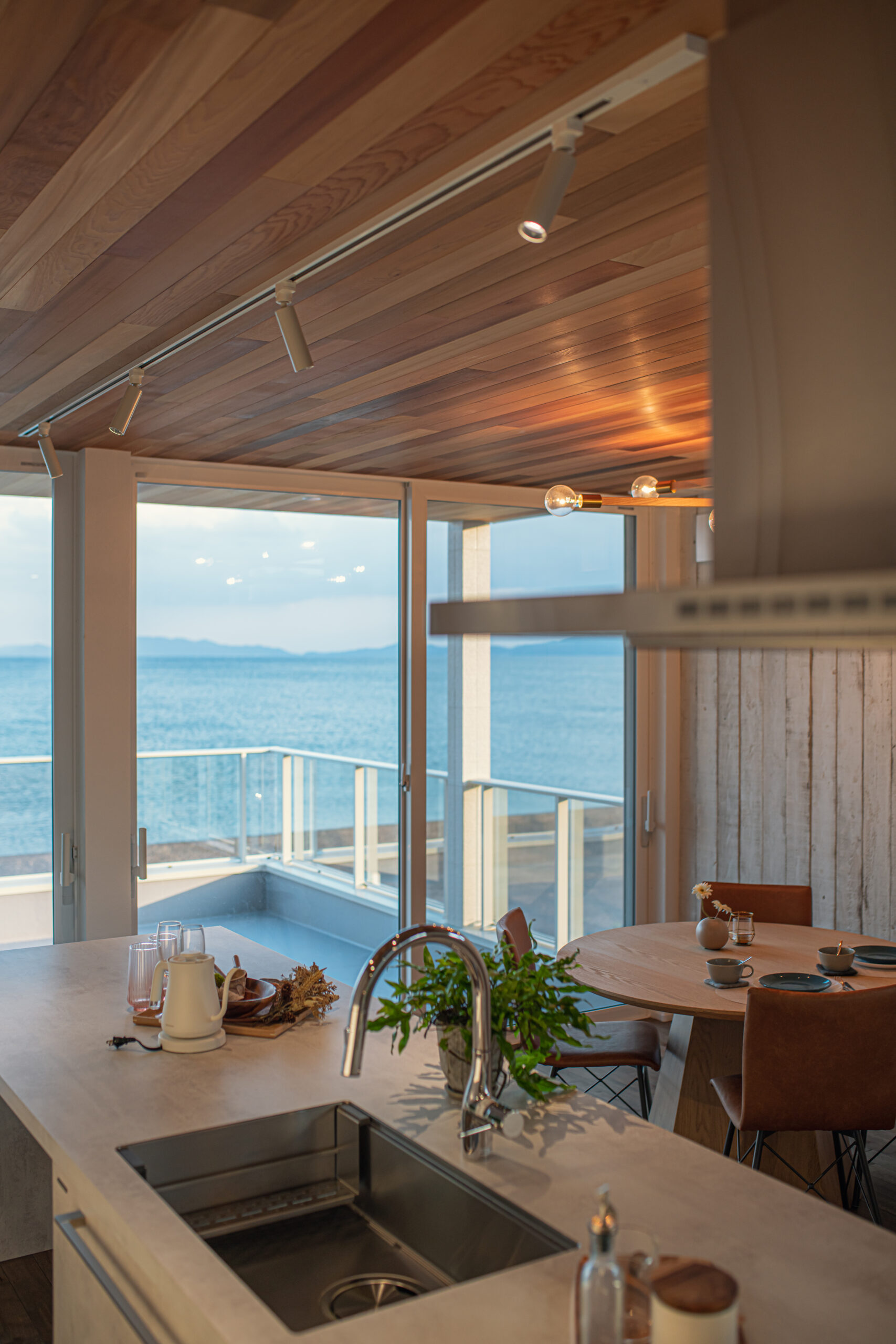 窓を開ければ、目の前に広がるのは空と海。ダイニングやキッチンからも、きらめく水面を一望できます。