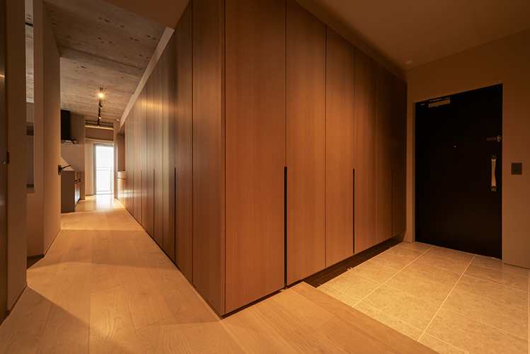 古い印象のインテリアを、今風でありかつ長期に亘って色あせない高級感のある印象に変更させて頂くために、造作の収納などを多数配置し、オリジナリティある空間演出にも配慮しました。そうすることで、いつの時代になっても色あせない、インテリアの見た目も耐久性あるものとなり、資産価値を向上させられている点についても、大きな特徴となっています。